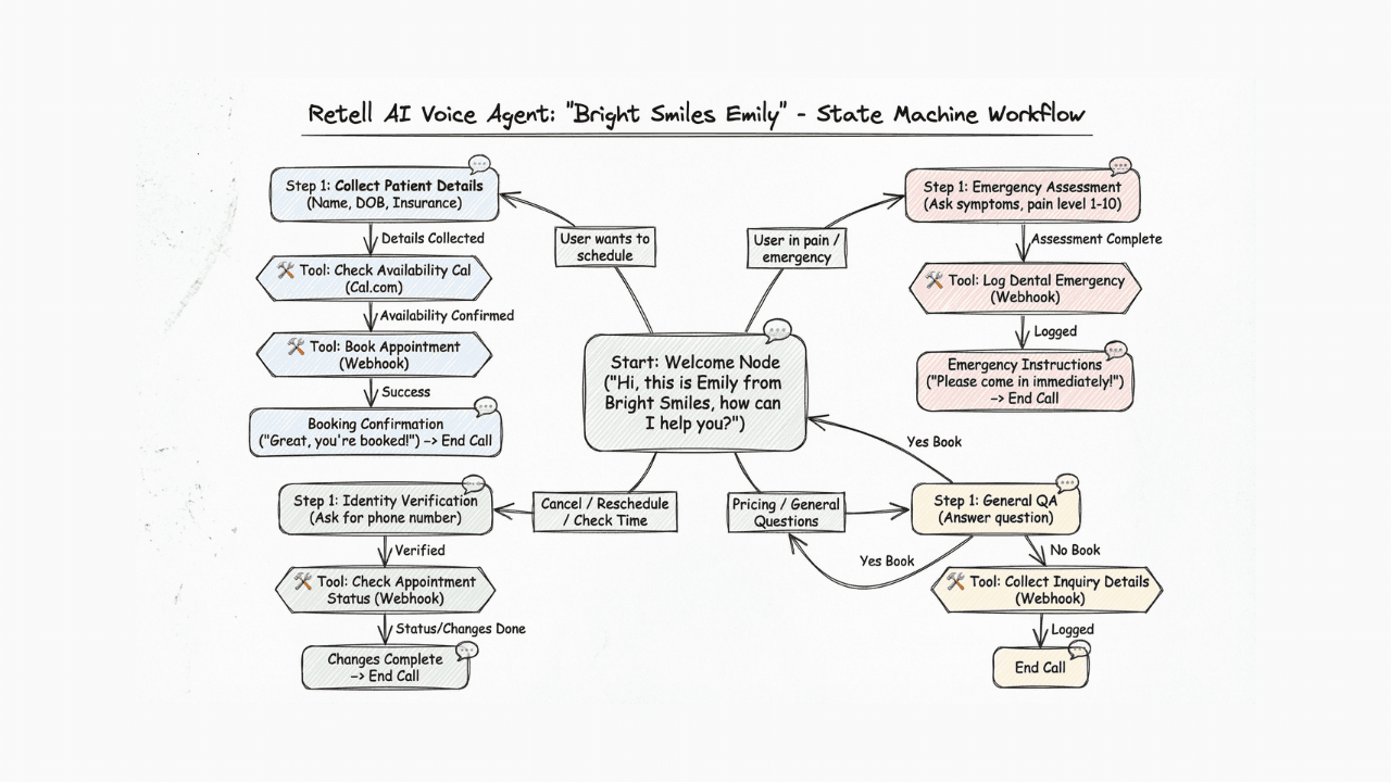 The front desk could only answer one call at a time, and after-hours emergencies went to voicemail. We built an AI Voice Agent that books appointments, triages urgencies, and alerts the dentist instantly-while the team focuses on in-person care.